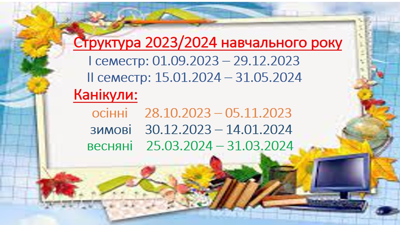 При формуванні структури навчального року просимо враховувати епідеміологічну ситуацію в державі.